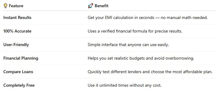 Knowing your EMI beforehand helps you avoid surprises, compare loan offers, and plan your finances with confidence.